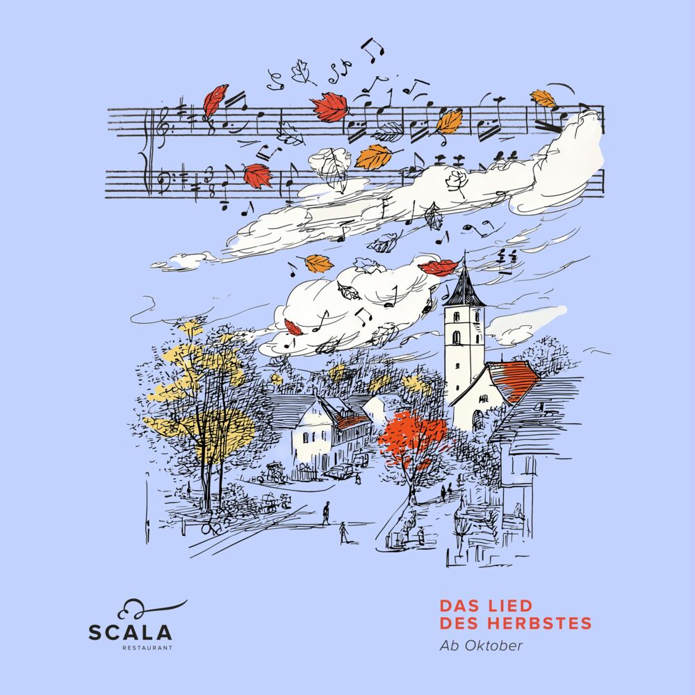 Ein warmes, goldenes Licht schimmert durch Straßen und Wälder. Die Tage werden kürzer, der Herbst tritt leise ein – mit dem taktvollen Rascheln des Laubs, dem Duft reifer Früchte und einer sanften Melancholie. In dieser Stimmung komponiert unsere Küche eine feine Melodie: rund, farbenfroh und voller Nuancen. Samtiger Kürbis, süße Birnen und würzige Pilze erzählen von Ernte, Wandel und Genuss. Feine Aromen entfalten sich wie die Noten einer Sinfonie. Lassen Sie sich im Restaurant SCALA von dieser klingenden Komposition tragen – mit Gerichten, die zum stillen Lied des Herbstes tanzen.