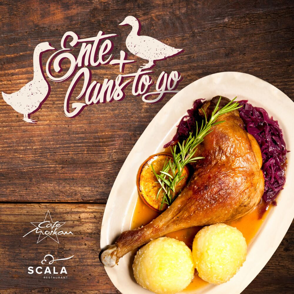 November - Dezember Ort: Restaurant Scala Bitte beachten: Dieses Angebot ist 2022 abgelaufen. Ente und Gans to go Ein festliches Mahl für zu Hause zum Mitnehmen. Für jeweils 4 Personen, inklusive der Beilagen. Mehr Infos in Kürze.