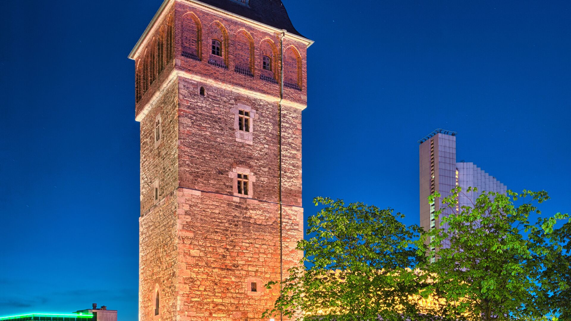 Erbaut im 12. Jahrhundert, gilt der Rote Turm als ältestes Gebäude in Chemnitz. Im Laufe seiner langen Geschichte mit vielen Funktionen betraut, brannte er beim Bombardement 1945 komplett aus. Mehrfach restauriert, gehört er heute zum Überbleibsel des alten Stadtkerns in einer komplett neu entworfenen Innenstadt.
